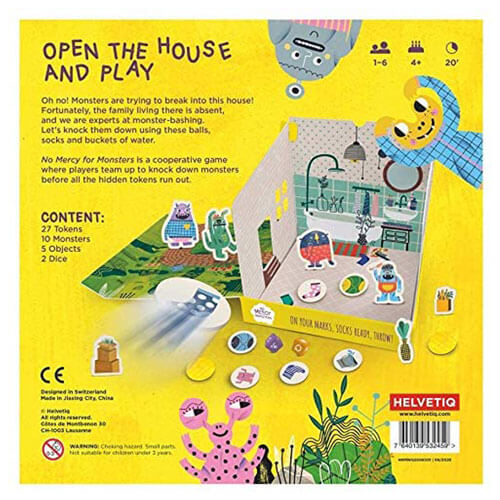 Geen genade voor Monsters is een coöperatief spel waarbij spelers samenwerken om de monsters neer te halen voordat alle verborgen tokens opraken.