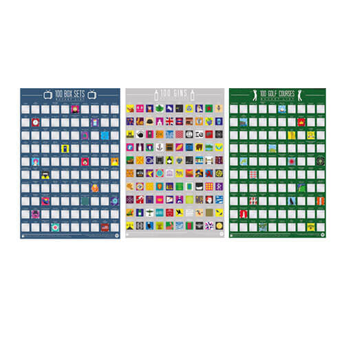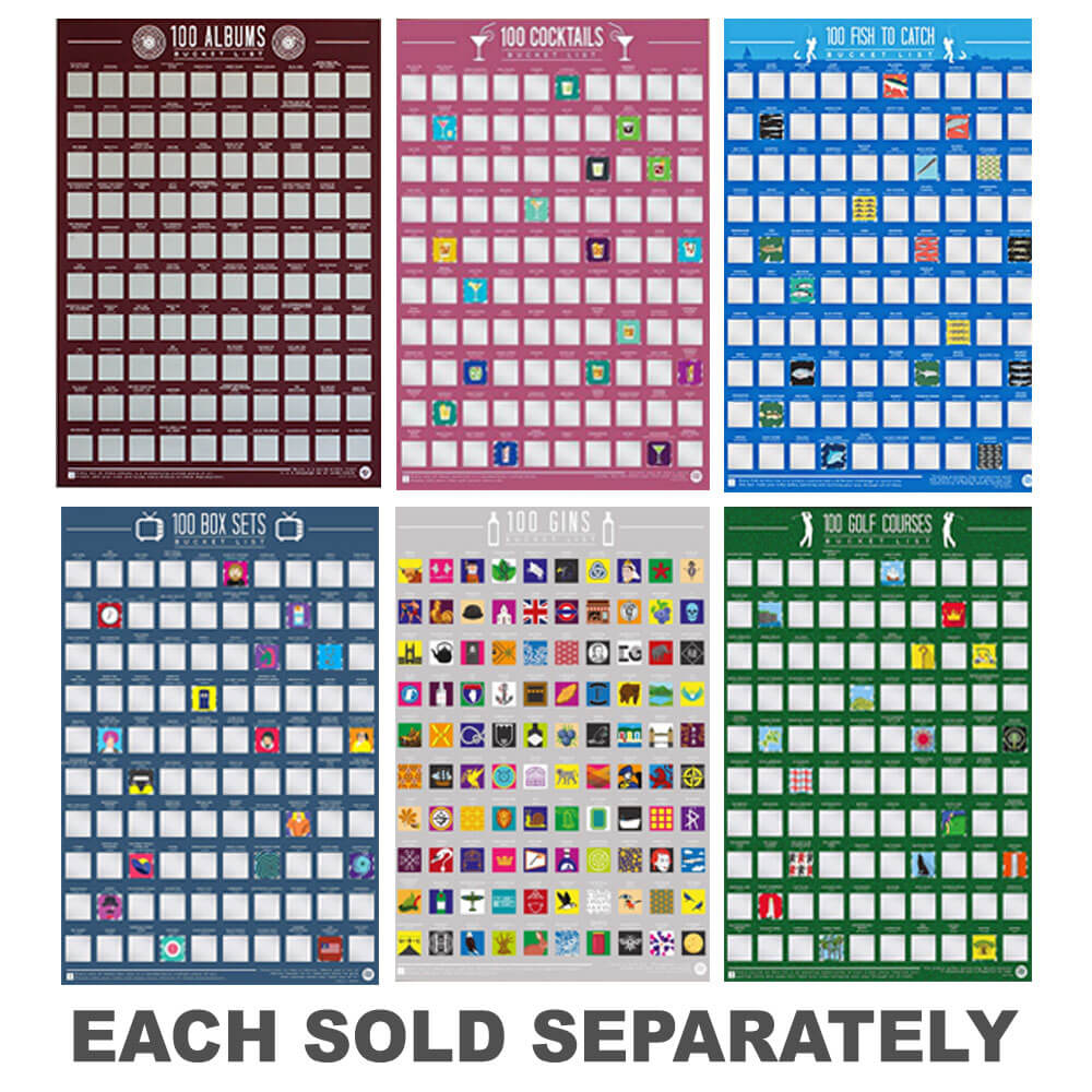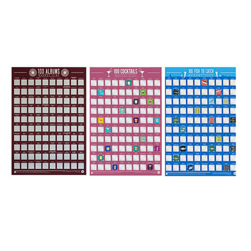 Onze kras van bucketlist -posters met verschillende thema's compileert 100 van ... alles! Met deze prachtige posters kunt u krassen terwijl u verder gaat om te onthullen wat zich verstopt onder de volgende doos.