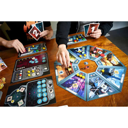 In Too Deep biedt een uniek verhaal dat je in de toekomst duwt in een gespannen, strategisch bordspel voor 1-5 spelers. Tekens en besteden acties om doelen te voltooien en sets te verzamelen. Aan welke kant van de wet komt u terecht?