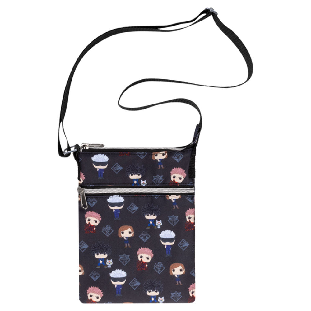De Funko Pop! Jujutsu Kaisen paspoorttas is gemaakt van veganistisch leer (polyurethaan). Bag heeft verstelbare schouderbanden, stevige metalen hardware en beschikt over gedrukte details.