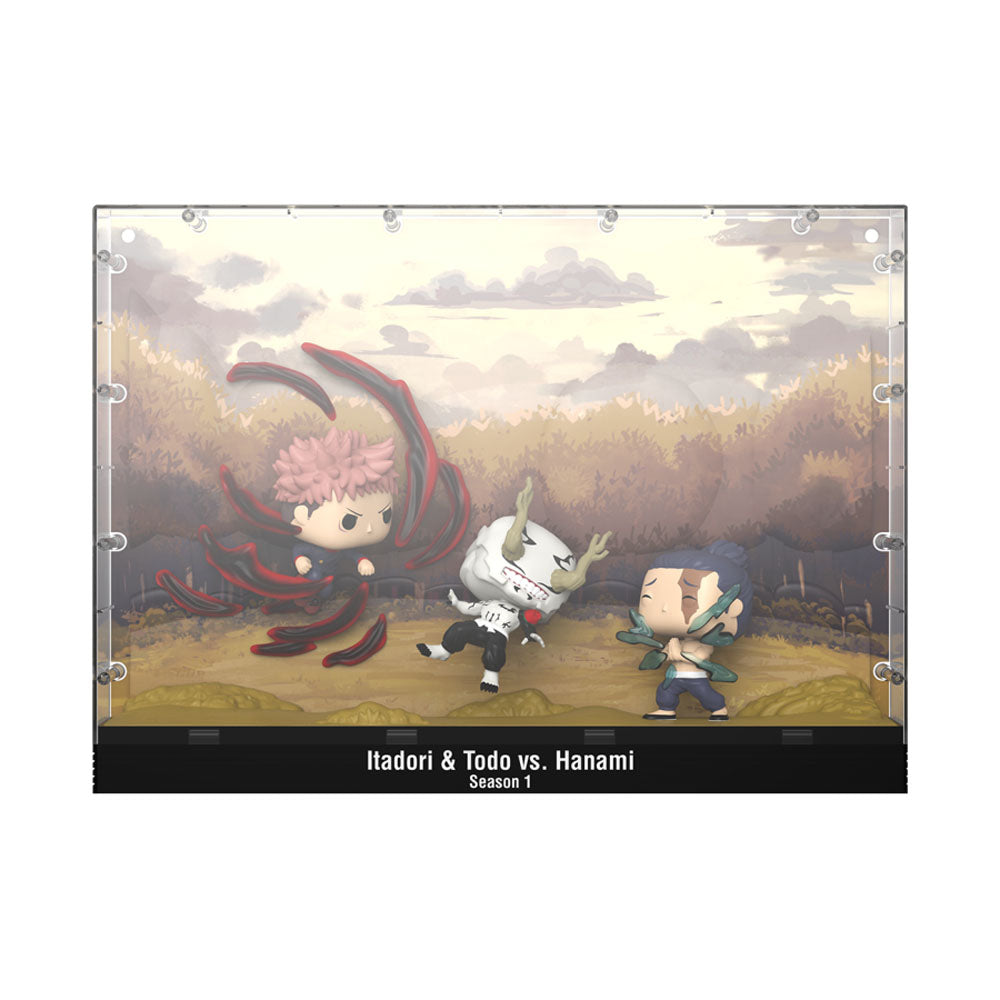 Voltooi je Jujutsu Kaisen -collectie door deze memorabele confrontatie in je huis te brengen als de luxe pop! Moment van pop! Yuji Itadori en Pop! Aoi Todo vs. Pop! Hanami.