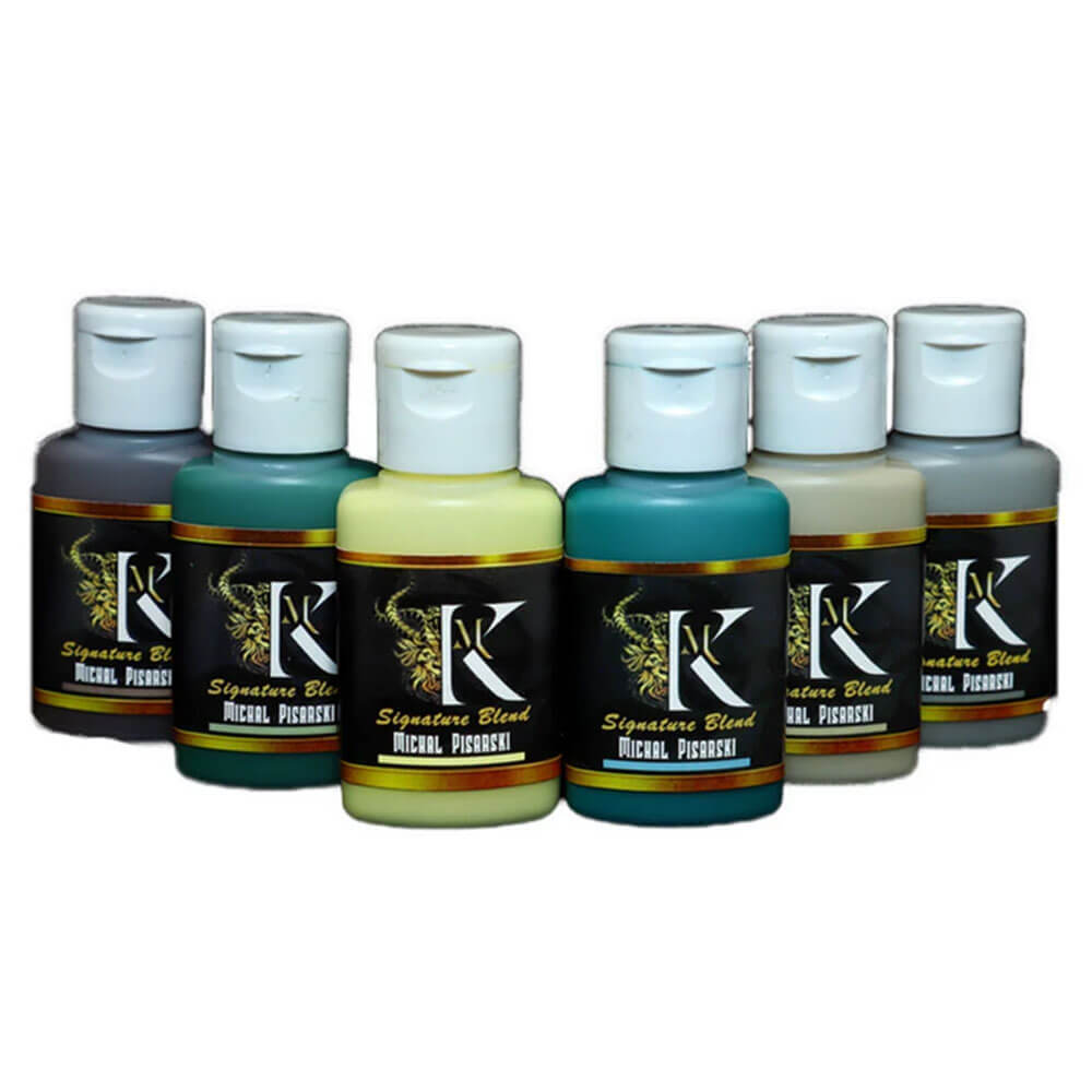 Deze verven bevatten de Kimera -pigmenten, in zware hoeveelheden zoals altijd. Dit betekent dat je de kracht krijgt die je gewend bent met de pure set en een geweldige dekking. Ze combineren ook perfect goed met de basisset en ze zijn daarvoor een zeer goede uitbreiding. Bovendien is er het werk van de kunstenaar achter de set. Omdat dit niet alleen sets zijn gebrandmerkt met de naam van een kunstenaar bovenaan. Deze verf werden vrij door de kunstenaar opgevat en van het conceptualiseren van ze tot het besef dat het ons meer dan 1 jaar constant werk kostte. De betrokken kunstenaars werkten samen met ons om elk van de 6 verf te maken met de kenmerken die ze wilden dat ze hadden om de perfecte verf te hebben voor hoe ze schilderen.