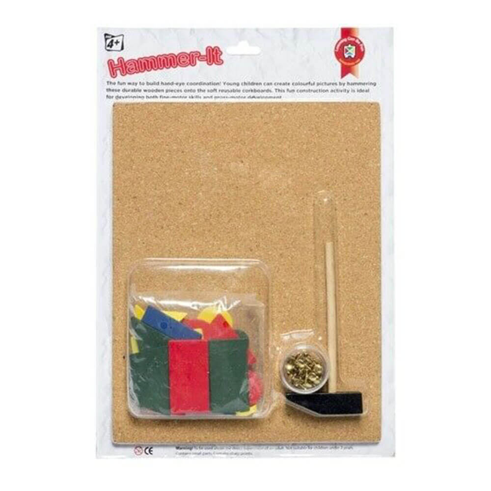 Jonge kinderen kunnen kleurrijke foto's maken door deze levendig gekleurde houten stukken op de zachte herbruikbare herkarurken te hameren.