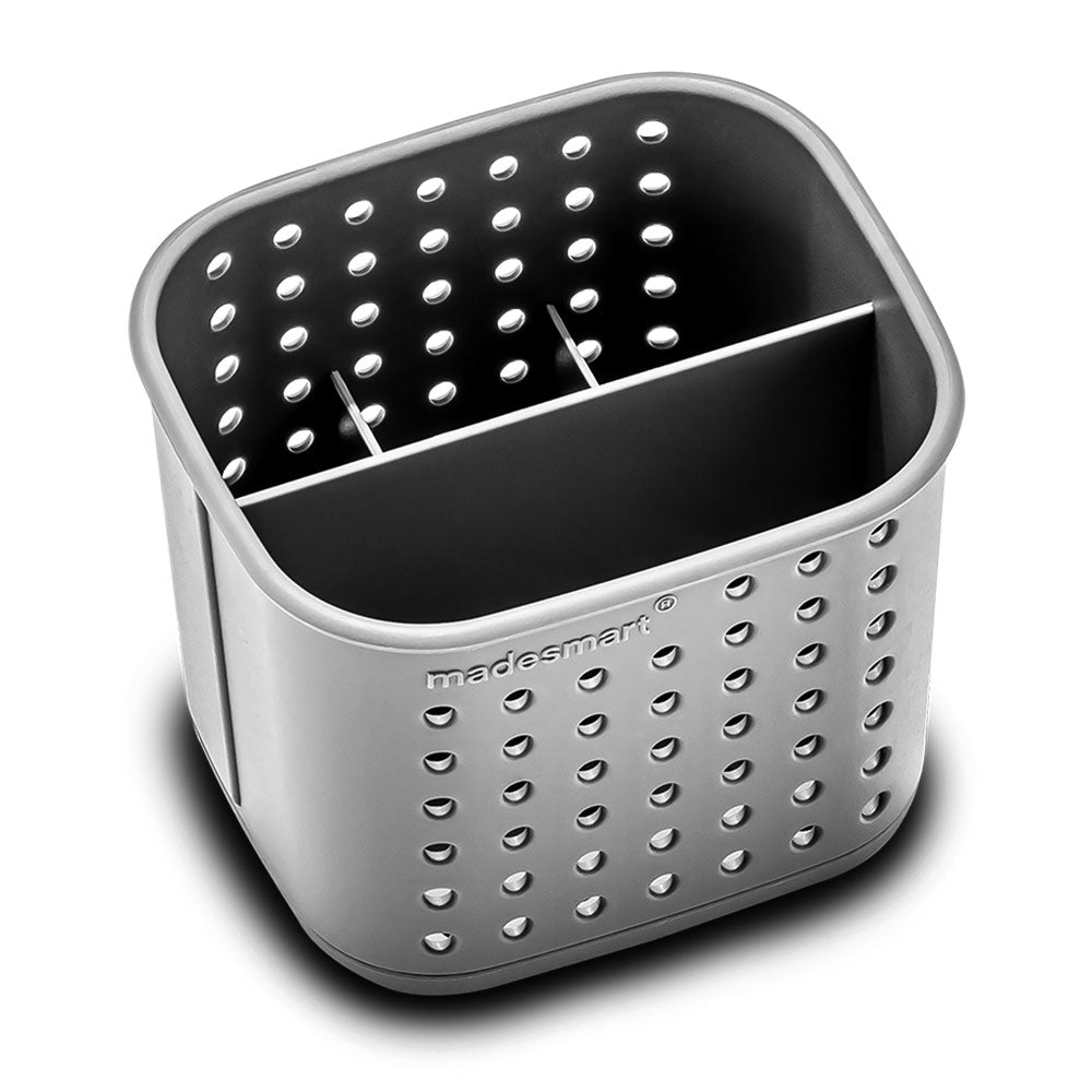 Het Madesmart Pocket Sink Station houdt gereedschap voor het wassen van afwassen netjes en vervat. Gedistreerde interieurcompartimenten bieden ruimte voor sponzen, scrubbers en schotstokken, terwijl ventilatiegaten sneller drogen bevorderen voor verbeterde sanitaire voorzieningen. De afneembare drainagebasis zorgt voor eenvoudig reinigen, en soft-grip materiaal beschermt aanrechten terwijl het station op zijn plaats houdt.