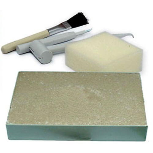 Graveer het skelet uit het blok en monteer vervolgens om deze kwaliteitsreplica te vormen. Het skelet bestaat uit ongeveer 8 stuks en het gereedschap van de paleontoloog (hamer en beitel) zijn opgenomen in de verpakking.