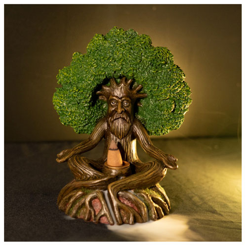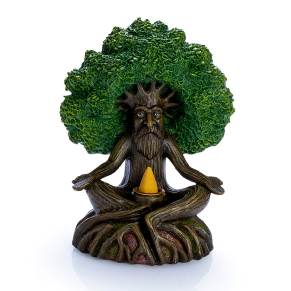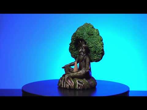 Magische terugstroom wierookbrander met een mediterende oude boom. Plaats een verlichte wierookkegel in de schoot van de boom en zie de rook door zijn wortels stromen. Geschikt voor wierookkegels.