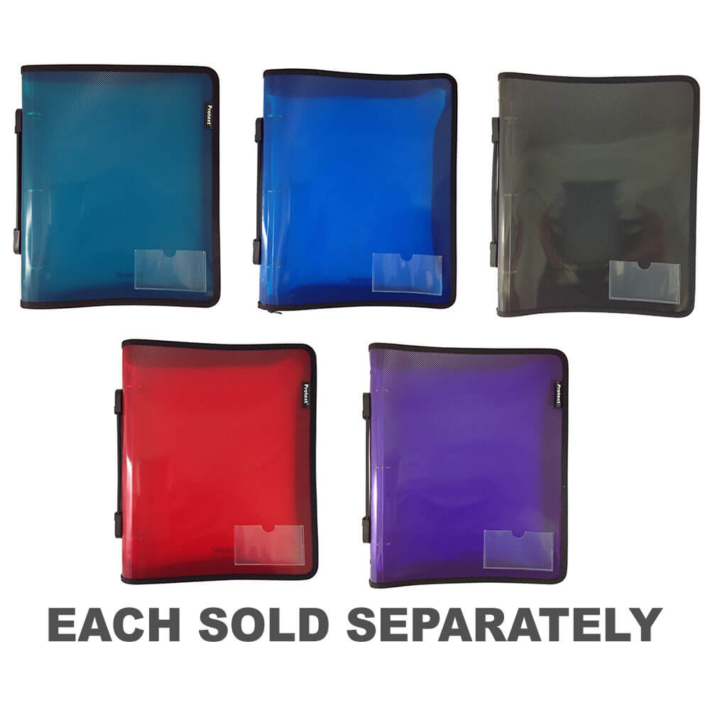 Protext Binder Buddy Zipper -bindmiddelen hebben een stijlvolle en duurzame polypropyleenkoffer, intrekbare handgreep en ritssluiting.