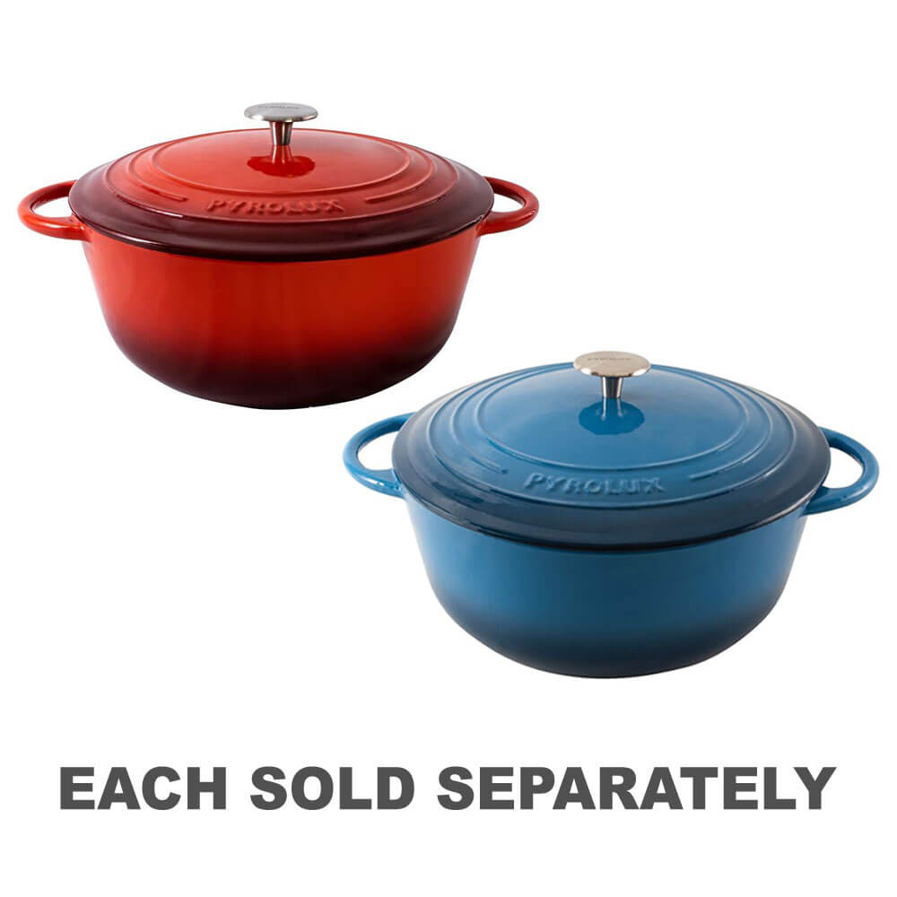 De Pyrolux Pyrochef gietijzeren ovenschotel is een lichtgewicht ontwerp braadpan, tot 40 procent lichter dan traditioneel gietijzer. Het kan worden gebruikt op elke warmtebron, inclusief inductie. Met een 3 -lagen geëmailleerde coating intern en extern is deze pan gemakkelijk te verzorgen en extreem duurzaam. Diameter: 20 cm. Capaciteit: 2 liter.