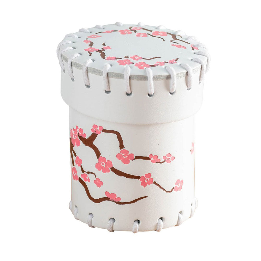 Die ervaring heeft ons geïnspireerd om deze Japanse lederen dobbelstenen te creëren. We hebben het van natuurlijk leer in witte kleur gemaakt en zijn deksel en lichaam versierd met een kleurrijke print; Het toont een bruine kersenboomtak terwijl het begint dat begint te leven met roze bloemen!