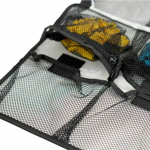 - 16 mesh hook-and-lus bevestigingszakken en 16 bijpassende mesh ritssluiting zakken.
