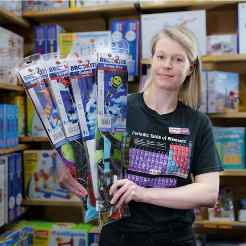 Deze rocket -vlieger komt van de Britse kitewinkel Brookite die al meer dan 100 jaar kwaliteitsvolle kindervliegers maakt. Al hun kites van hoge kwaliteit worden vervaardigd met traditionele methoden, met de hand gestikt en met behulp van ripstop nylon.