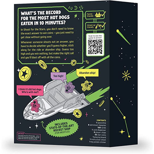 Shoot for the Stars is een feestspel waar alle antwoorden cijfers zijn. U hoeft het exacte antwoord niet te weten om punten te winnen - u moet gewoon dichtbij komen zonder over te gaan.
