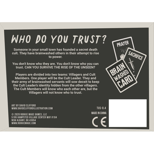 A DEVIOUS PARTY GAME FOR ADULTS - A social deduction party game that turns friend against friend as a secret cult attempts to take over your town. Will the villagers be able to determine the cult leader's identity before it's too late?
