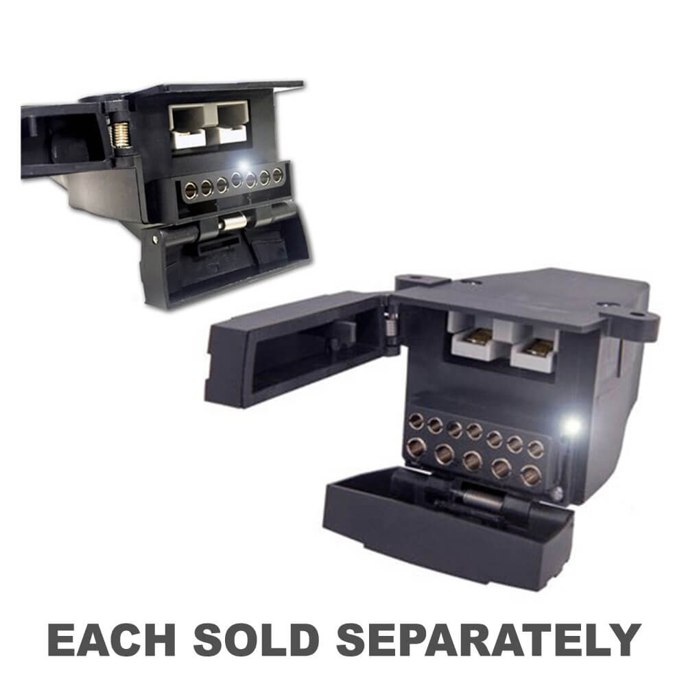 De All In One Trailer -aansluiting ontworpen door Ark voor campertrailers, boten en caravans die een hoog stroomvermogen vereisen. Wordt geleverd in een netjes en opgeruimd pakket.