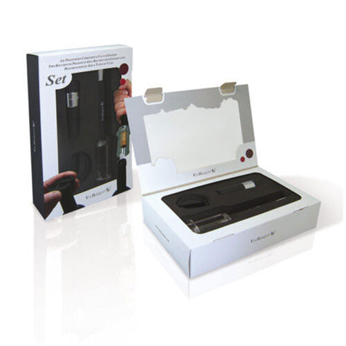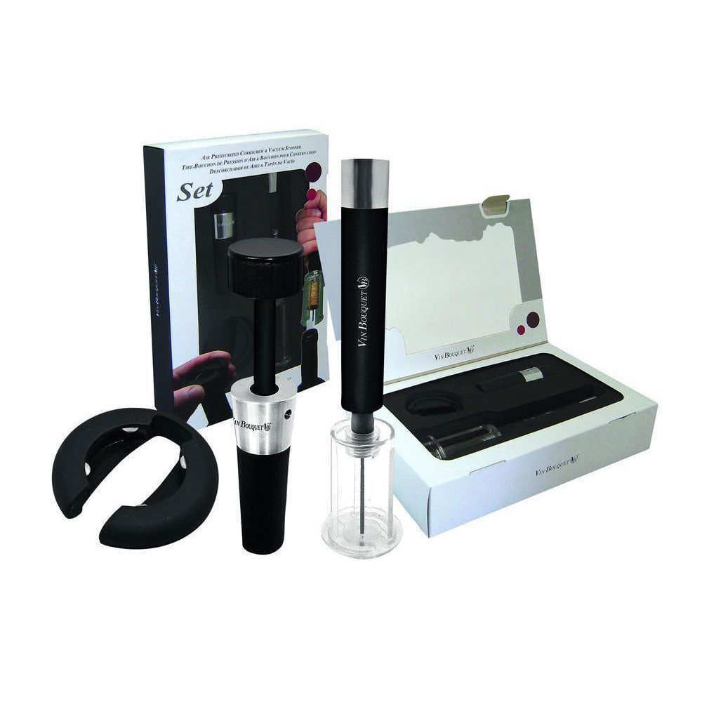 Vin Bouquet is een compleet en professioneel assortiment wijnaccessoires. Het product en de verpakking profiteren van een elegant ontwerp dat alle generaties behaagt. Deze wijngeschenkdoos omvat een drukkurkentrekker, een vacuümstop en een foliesnijder.