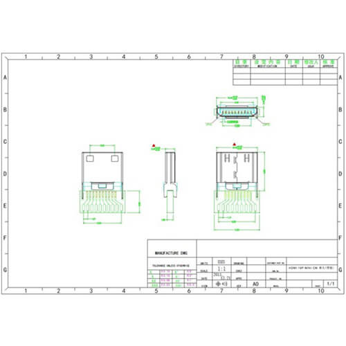 Kwaliteit Goud vergulde mini HDMI -plug voor PCB -montage.