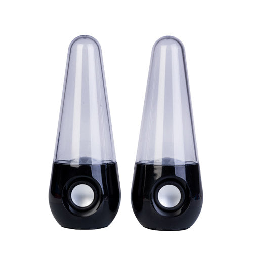 • Set of two speakers featuring mesmerising water jets and illuminating LED lights
